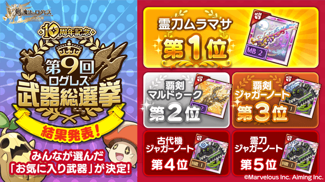 皆さんお待ちかね!10周年記念「第9回ログレス武器総選挙」の結果を発表します!