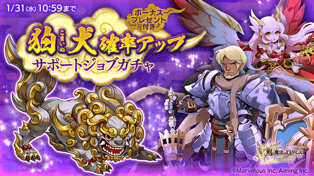 ●サポートジョブ必見!「狛犬確率アップ サポートジョブガチャ」【1/10(水)更新】