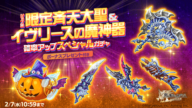 強力な武器を手に入れよう!「ジョブ別 限定斉天大聖&イヴリースの魔神器確率アップスペシャルガチャ」