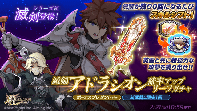 ※「滅剣アドラシオンは「定番」タブの「リーフ ガチャ」からも入手可能です。