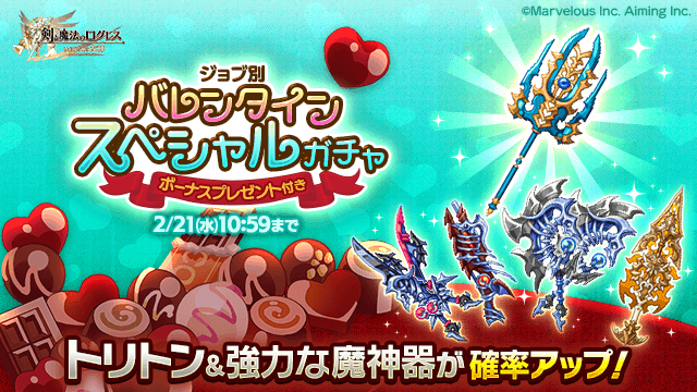 トリトンと一部の魔神器を確率UP!「ジョブ別 バレンタインスペシャルガチャ」