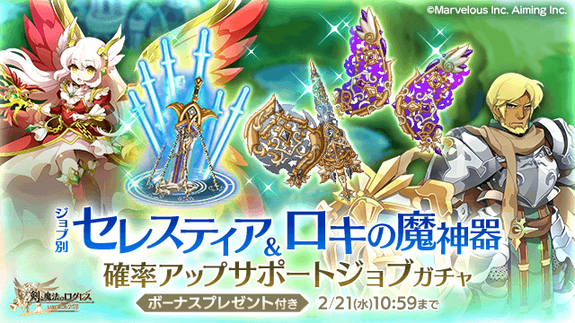 サポーター必見!「ジョブ別 セレスティア&ロキの魔神器確率アップサポートジョブガチャ」