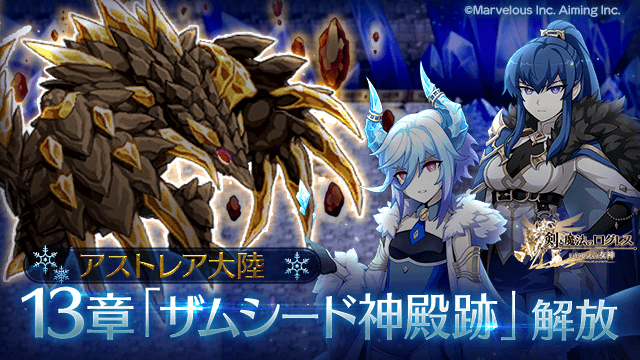 2024/3/6(水)メンテナンス後より、「アストレア」タブのシナリオクエストにて13章「ザムシード神殿跡」を配信します。