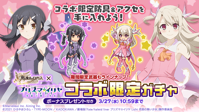 期間中、「ログレス」×「Fate/kaleid liner プリズマ☆イリヤ Licht 名前の無い少女」コラボイベントを開催します。