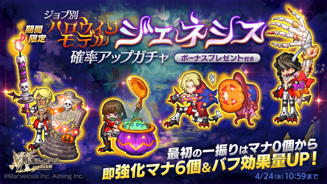 MB武器となった「ハロウィンモデルジェネシス」は、必殺スキル1回目使用時にマナが0であれば、3個たまる&マナ強化する追加効果が特徴!