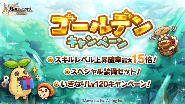 スキルLv上昇確率最大15倍などで冒険をサポート!「ゴールデンキャンペーン」
