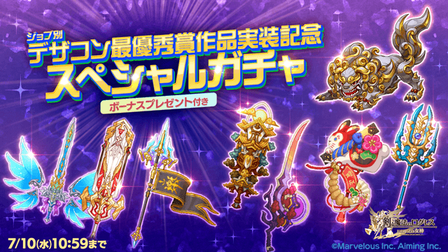 期間中、ガチャの「オススメ」タブにて「ジョブ別 デザコン最優秀賞作品実装記念スペシャルガチャ」を販売します。