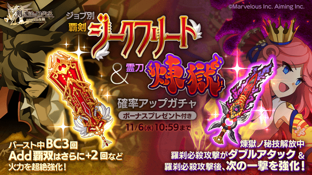 ジョブ別 覇剣ジークフリート&霊刀煉獄確率アップガチャ