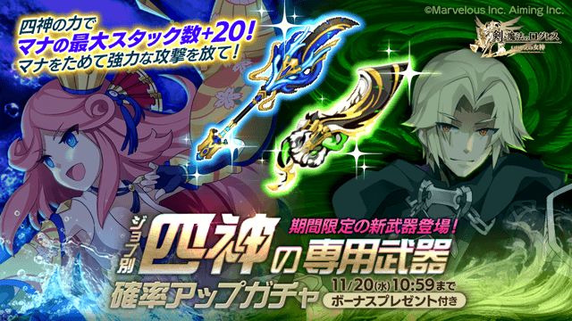 【11/13更新】新たな期間限定武器シリーズ「四神の専用武器」から、霊刀&滅剣登場!