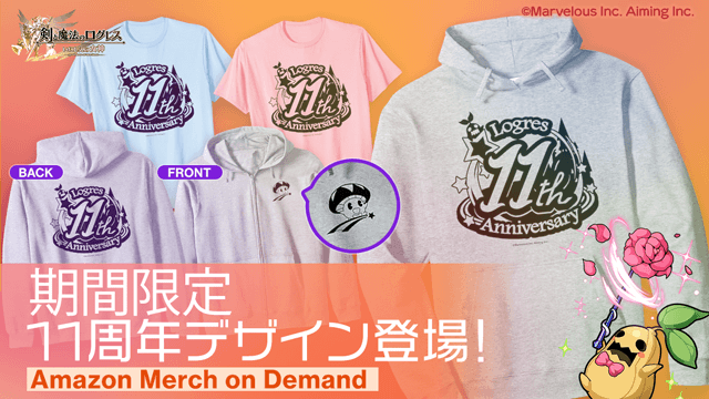 Amazonのサービス「Merch on Demand(マーチオンデマンド)」にて販売中のログレスのアパレルグッズに、11周年記念の期間限定デザインが登場!