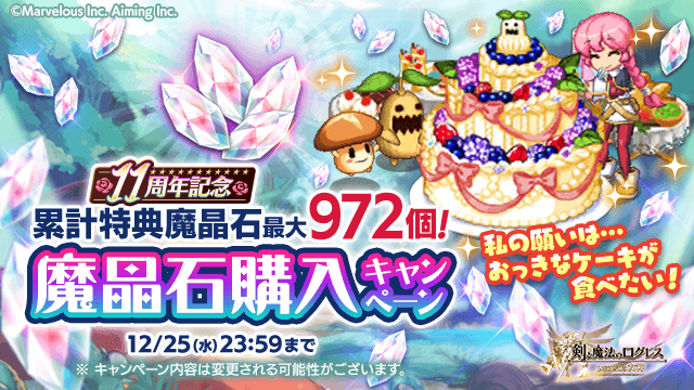 2024/11/20(水)メンテナンス後~12/25(水)23:59まで