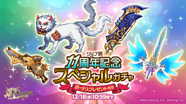 期間中、ガチャの「オススメ」タブにて「ジョブ別 11周年記念スペシャルガチャ」を販売します。