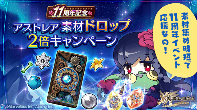 11周年イベント応援として、期間中エリア取得制限のあるマップでの素材のドロップ数が通常の2倍に!