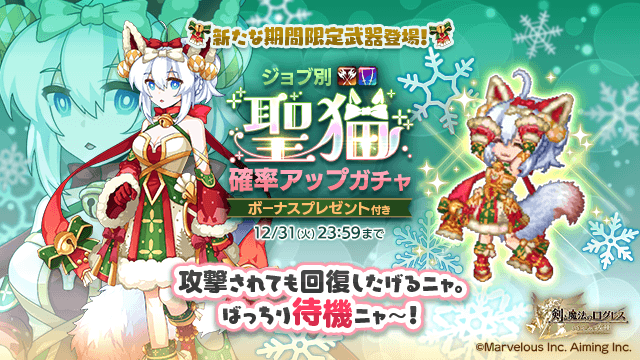期間中、ガチャの「オススメ」タブにて「ジョブ別 聖猫確率アップガチャ」を販売します。