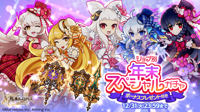 期間中、ガチャの「オススメ」タブにて「ジョブ別 年末スペシャルガチャ」を販売します。