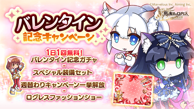 無料ガチャや装備セット販売など、バレンタインを盛り上げる催しが盛りだくさん!