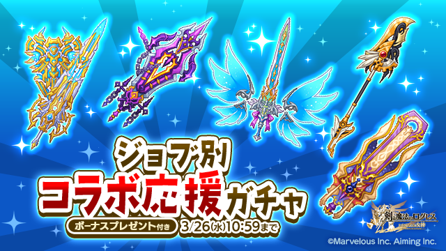 強力な武器が確率アップしたジョブ別のガチャで、コラボ攻略を応援!