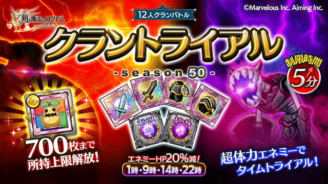 クランレベルに応じてクエストが解放される「クラントライアル-season50-」を開催します。