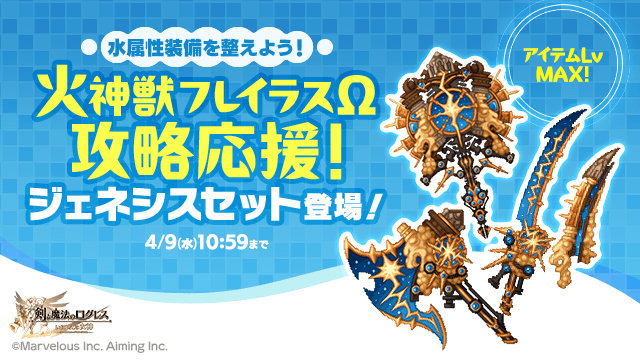 「火神獣フレイラスΩ」に有利な水属性の装備セットをご用意!