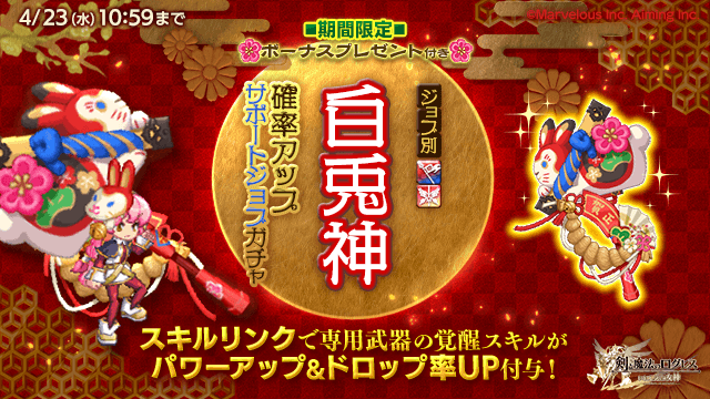 期間中、ガチャの「オススメ」タブにて「ジョブ別 白兎神確率アップサポートジョブガチャ」を販売します。