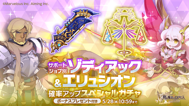 期間限定武器「ゾディアック」と、「エリュシオン」が、ガーディアン/ヴァルキリーのジョブ別で確率アップ!