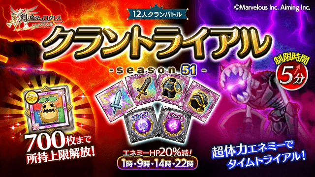 クランレベルに応じてクエストが解放される「クラントライアル-season51-」を開催します。