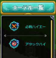 ▲画面右側にある「エーテル一覧」で発動している効果を確認!