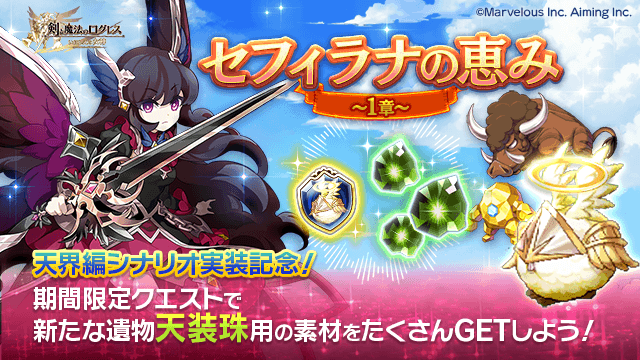 期間中、「天界」タブのスペシャルクエストおよび時限クエストにて「セフィラナの恵み~1章~」を開催します。