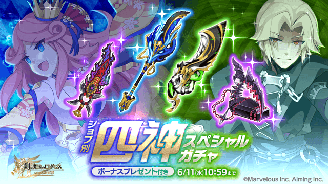 期間中、ガチャの「オススメ」タブにて「ジョブ別 四神スぺシャルガチャ」を販売します。