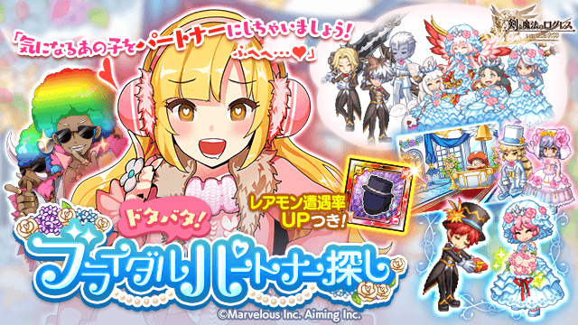 限定武器アバター「ウェディングブーケ(青/桃)」や、レアモン遭遇率UP&火・土・闇属性武器の必殺攻撃スキルに追撃がつく頭装備「フォーマルヘッド」にも注目です♪