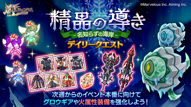 期間中、「アストレア」タブのスペシャルクエストにて「精晶の導き-名知らずの海岸- デイリークエスト」を開催します。