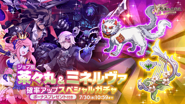 期間中、ガチャの「オススメ」タブにて「ジョブ別 茶々丸&ミネルヴァ確率アップスペシャルガチャ」を販売します。