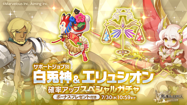 期間中、ガチャの「オススメ」タブにて「サポートジョブ別 白兎神&エリュシオン確率アップスペシャルガチャ」を販売します。
