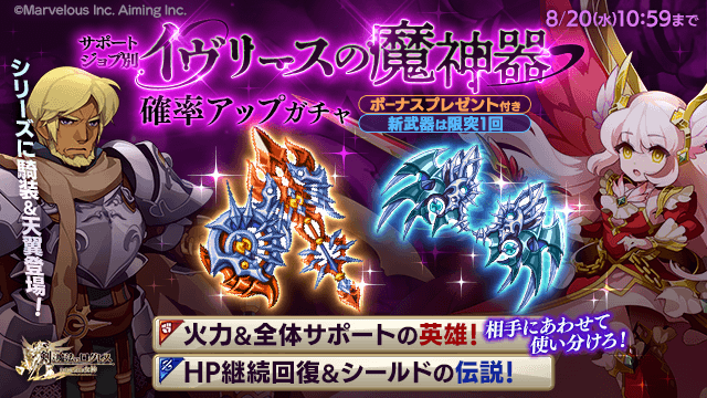 期間中、ガチャの「オススメ」タブにて「サポートジョブ別 イヴリースの魔神器確率アップガチャ」を販売します。