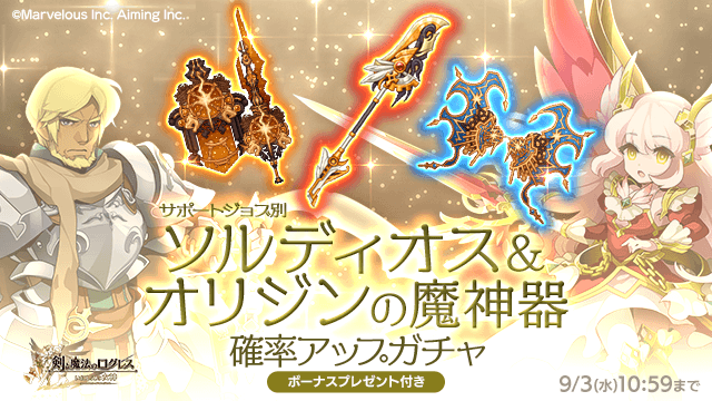 「ソルディオス」と「オリジンの魔神器」が確率アップ!
