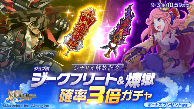 ジークフリート&煉獄が確率3倍!サポートジョブ別ガチャも販売!