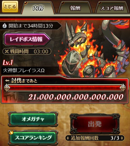 レイドボスの出現チャンスは1日3回、挑戦可能な時間は20分間です。