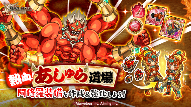 イベント限定素材を集め、加工場で「阿修羅の兜-炎神-」を含む阿修羅装備や「阿修羅の魔神器」シリーズを製作しよう!