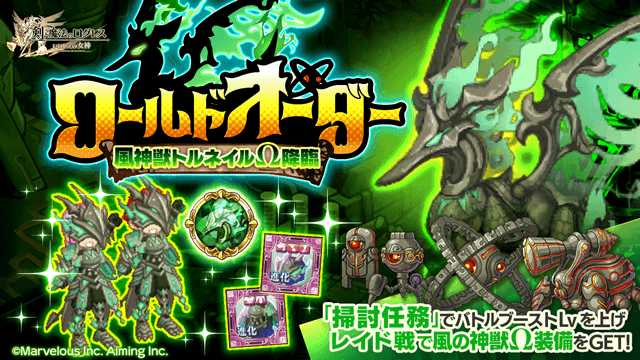 潜在能力解放可能な風属性の神獣Ω装備「神獣トルネイルΩの覇装」を手に入れるチャンス!