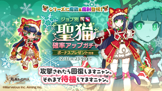 期間中、ガチャの「オススメ」タブにて「ジョブ別 聖猫確率アップガチャ」を販売します。