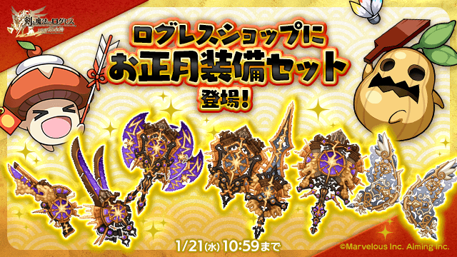 期間中、ログレスショップの「オススメ」タブにて、お正月記念装備セットを販売します。