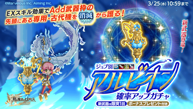 ※「アルビオンの専用武器・古代機」シリーズは「定番」タブの各ジョブガチャからも入手可能です。