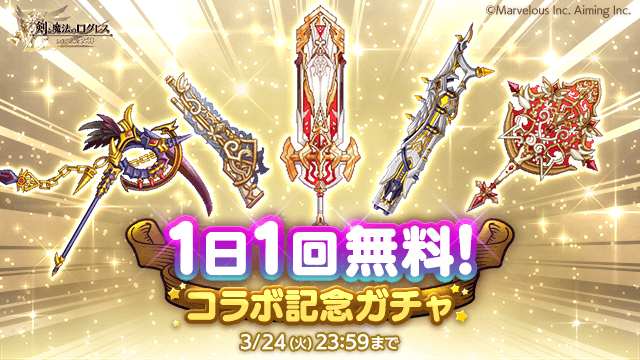 ※「1日1回無料!コラボ記念ガチャ」の利用回数は毎日0:00にリセットされます。