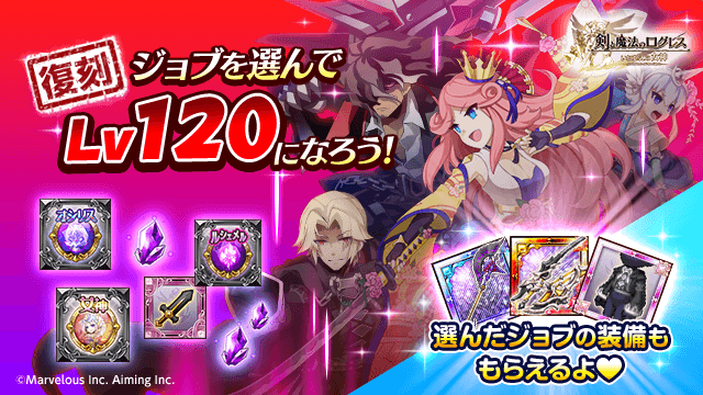 期間中、「イベント」タブにて、3つの対象ジョブから1つを選び、Lv120になれる&1億ダメージが出せるキャンペーンクエストを復刻配信します。