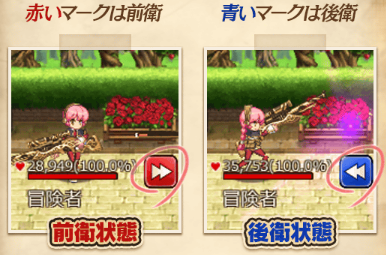 ▲戦闘開始時の後衛状態は効果が未発動。攻撃して一度前衛に切り替わることで、各フォーメーションの効果が発動するようになるぞ!
